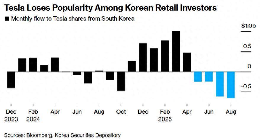 特斯拉在韩国散户群体中的人气急剧下滑